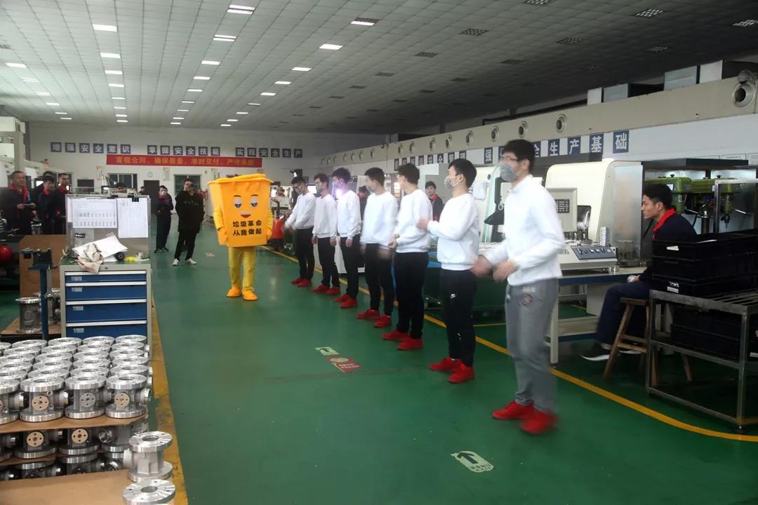 2018年1月11日,一場別開生面的環(huán)??扉W秀活動(dòng)在天信廠區(qū)上演。正當(dāng)員工們在自己的崗位上有條不紊工作時(shí),金工車間空地上突然響起了時(shí)尚動(dòng)感的曳步舞音樂,只見八位帶著灰色口罩、穿著統(tǒng)一衣服的天信文藝俱樂部成員從工作崗位上來到空地中間,配合著音樂激情熱舞,炫動(dòng)全場。中間還有一位萌萌的、扮演垃圾桶的黨員志愿者,向圍觀的員工作垃圾分類的宣傳。