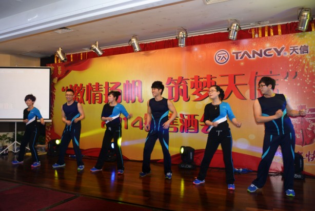 到了晚上,嚴肅莊重的會議變為燈光輝煌、激情四溢的熱鬧場景。公司領導和嘉賓、還有200多名營銷、后勤服務人員歡聚一堂,共享豐收的喜悅。陳董和范總先后上臺致辭,在他們的字里行間,無不流露出對大家的感恩之心,他們還表示公司將在新的一年里一如既往的關心和支持銷售工作,這讓大家為之榮耀,為之振奮!