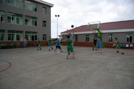 參觀后,一場軍民籃球賽隨即激烈上演。雙方球員本著“友誼第一,比賽第二”的原則,在賽場上奮力拼搏、積極進(jìn)攻、全力防守、默契配合,共同為在場觀眾奉獻(xiàn)了一場精彩的比賽,最后比分為87:83,天信隊(duì)以微弱的優(yōu)勢勝出。