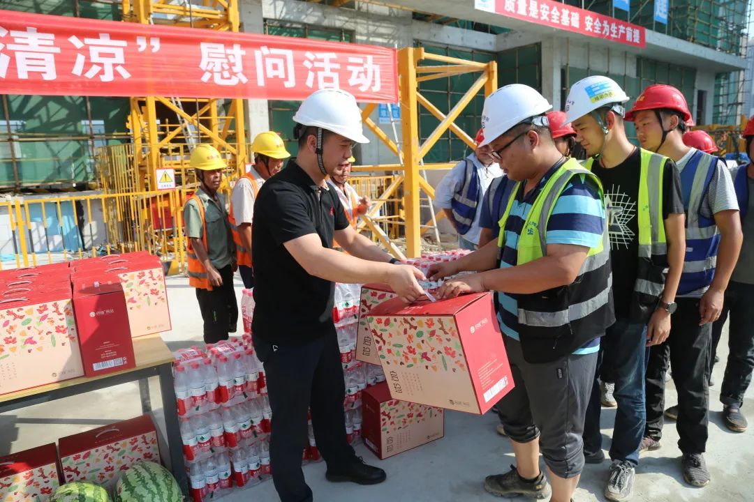 集團(tuán)黨委班子成員分別走訪慰問了清江錦城項目、清能正榮府項目、清能龍湖天曜項目以及荊州學(xué)府花園項目,實地察看了項目施工現(xiàn)場,詢問了解了項目安全生產(chǎn)、勞動保護(hù)及防暑降溫工作情況,積極協(xié)調(diào)解決職工暑期生產(chǎn)生活方面的困難和問題,為項目一線職工送去西瓜、礦泉水、清涼禮包等防暑降溫物品,叮囑他們在做好本職工作的同時,注意高溫酷暑下的自我保護(hù),把健康和安全生產(chǎn)放在第一位,以良好的精神狀態(tài)投入到工作中。