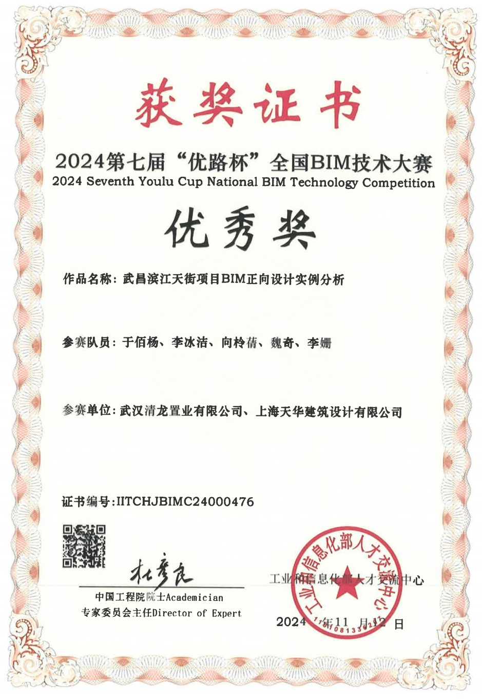 第七屆“優路杯”全國BIM技術大賽優秀獎